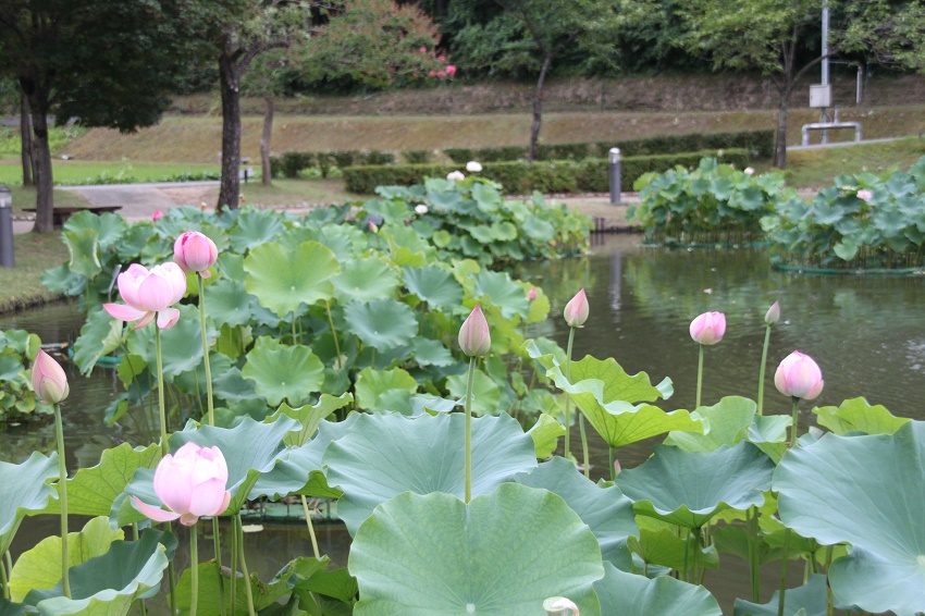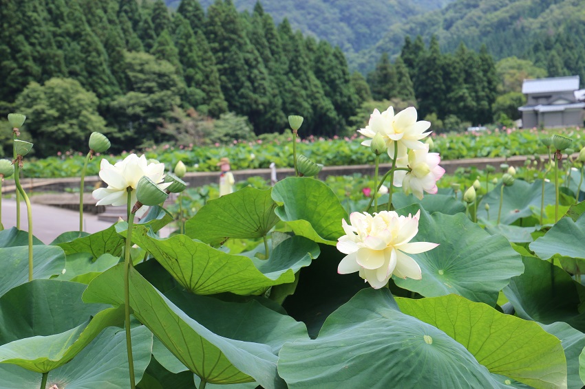 福井県のハナ蓮公園の蓮です。広い所に沢山の蓮が咲いています。