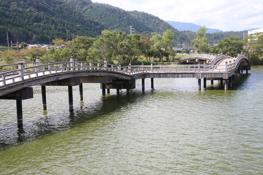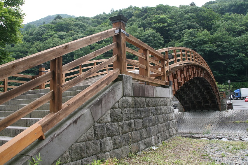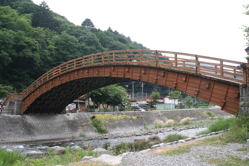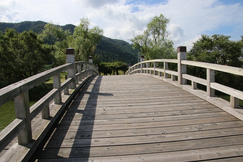 駐車場で車を停めてこの橋を渡ります。