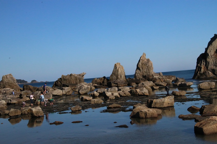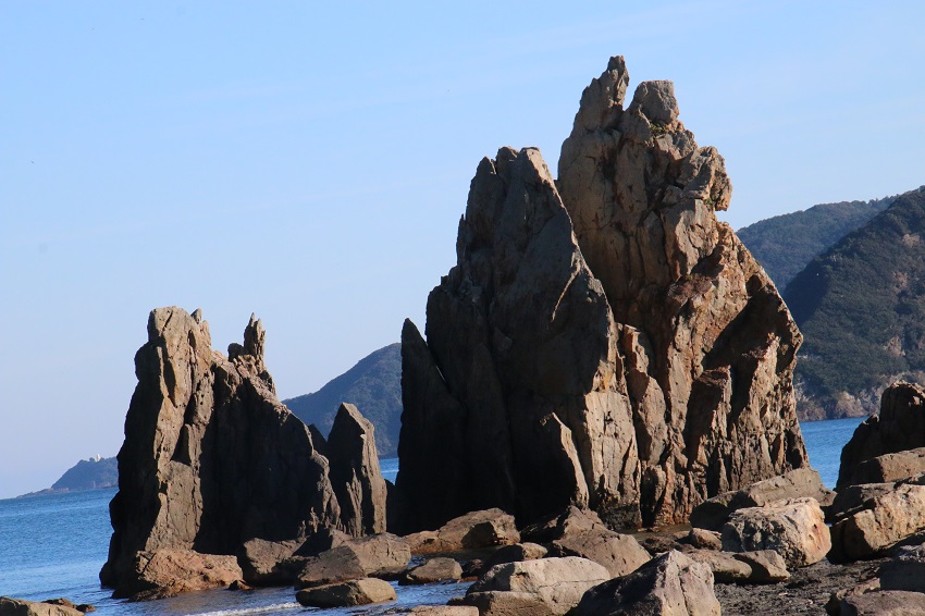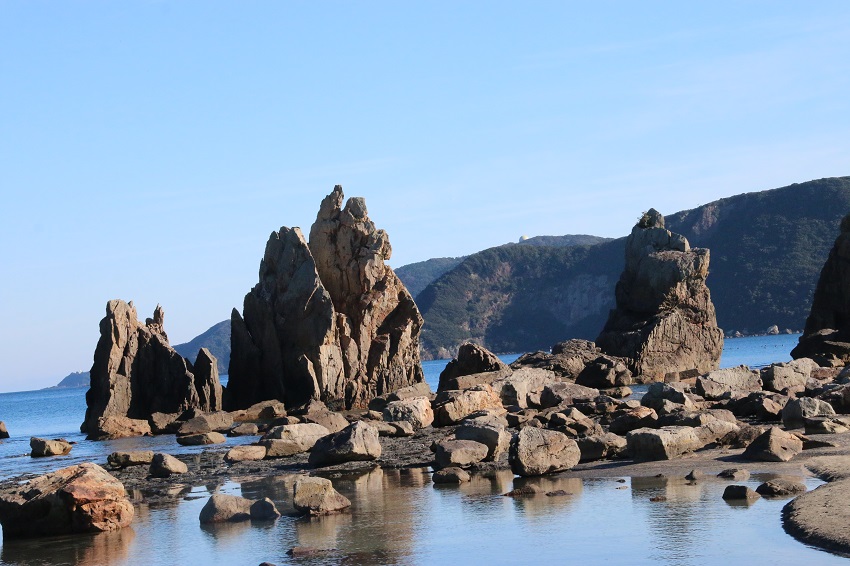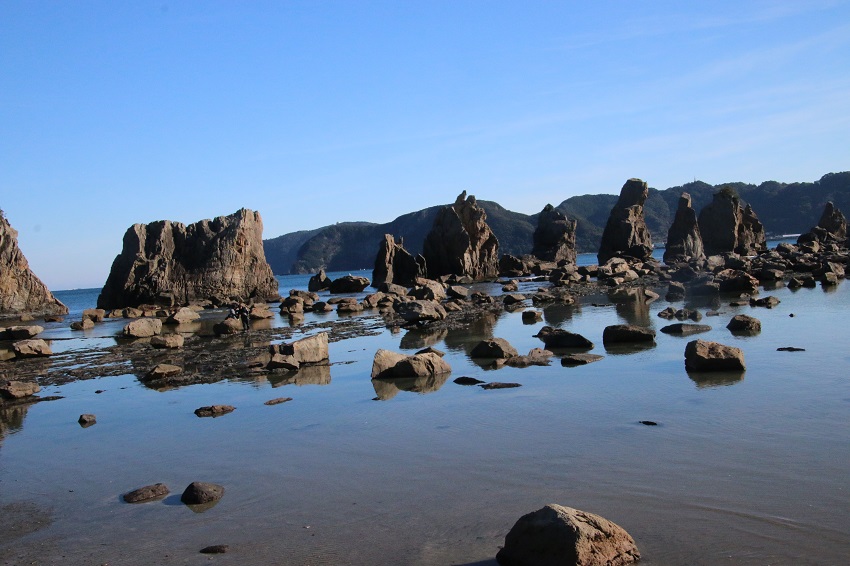 此処から紀伊半島に戻り足を延ばすと、橋杭岩にたどり着きます