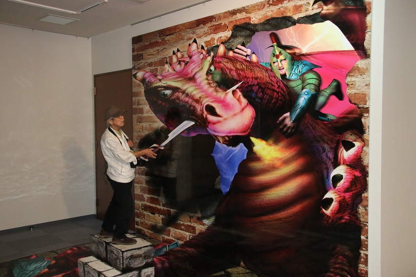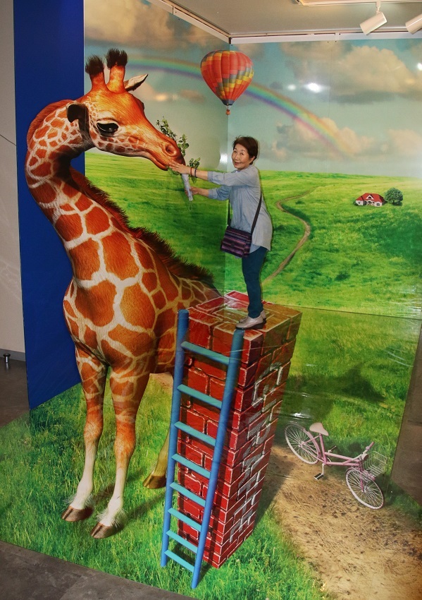 床や壁に描かれた絵が立体的に見えます。