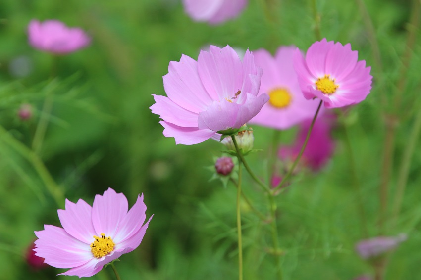 達身寺の前が広いコスモス畑になっています。