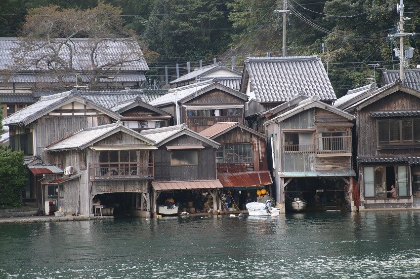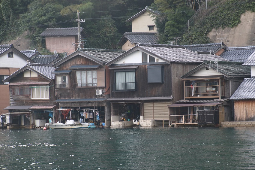 伊根の舟屋です今で言う船のガレージです。昔は木造船で漁をして真下の船が雨に濡れないように