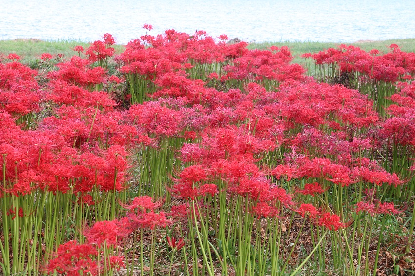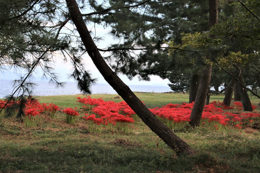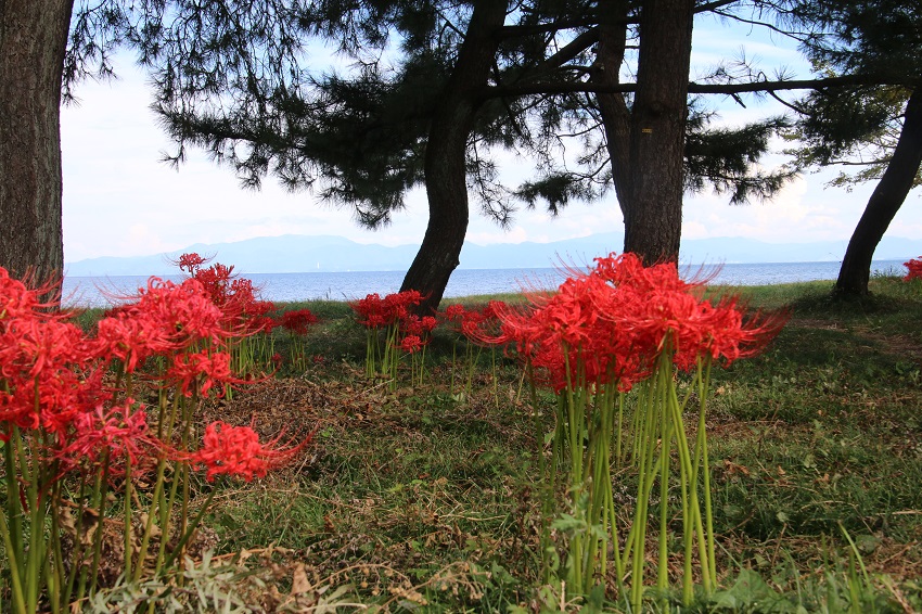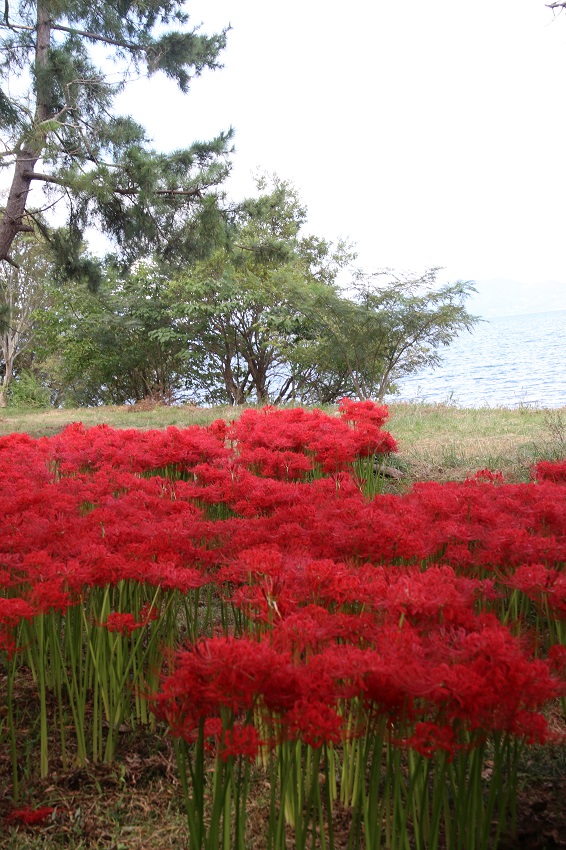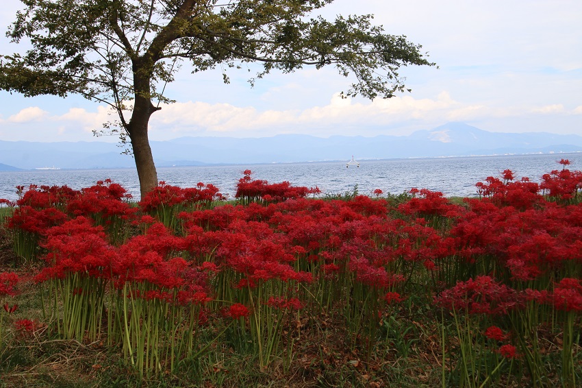 琵琶湖湖畔には有名な彼岸花の名所がありますが